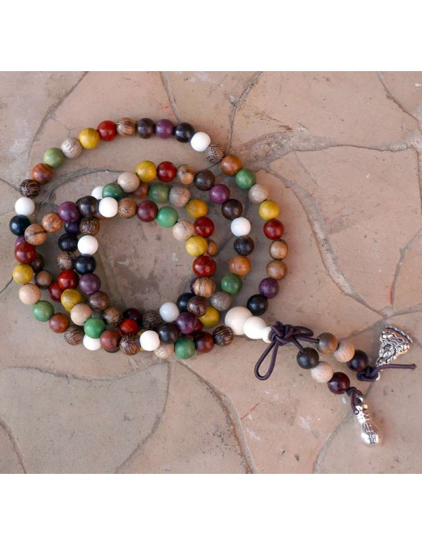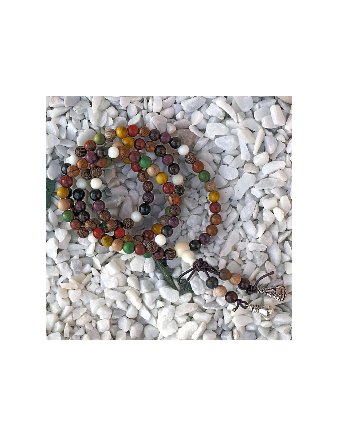 Collar japa mála 108 cuentas de madera de wengué, ébano y manzano