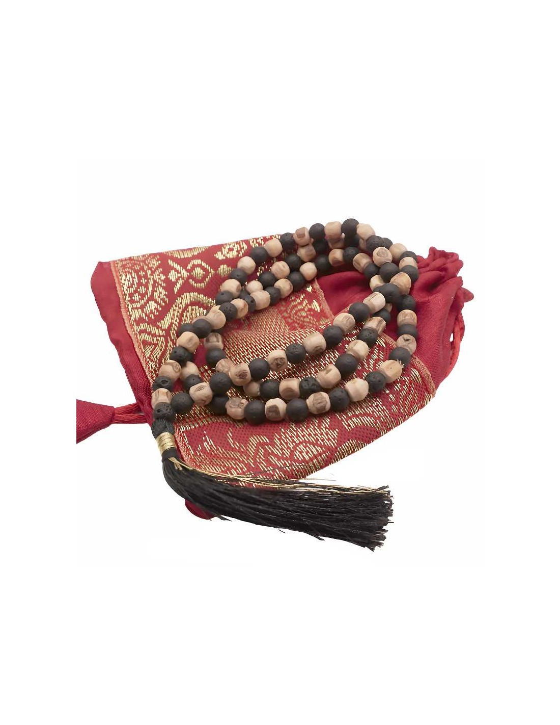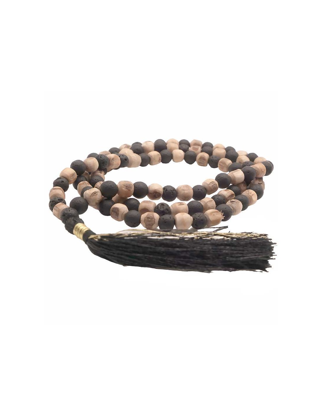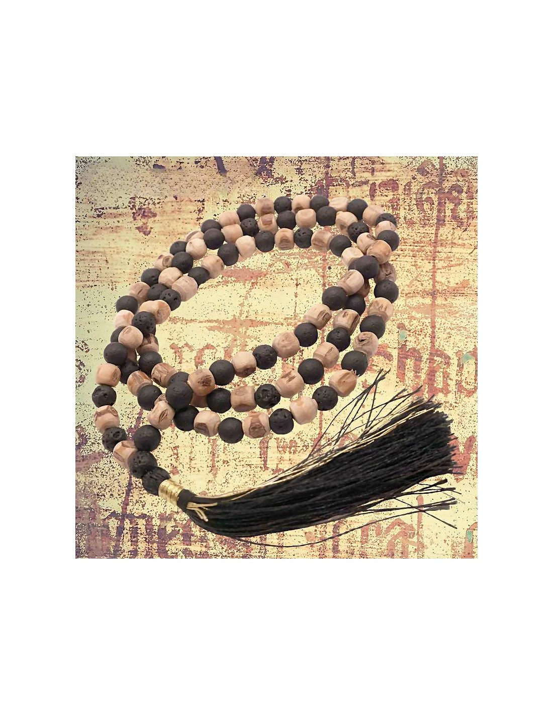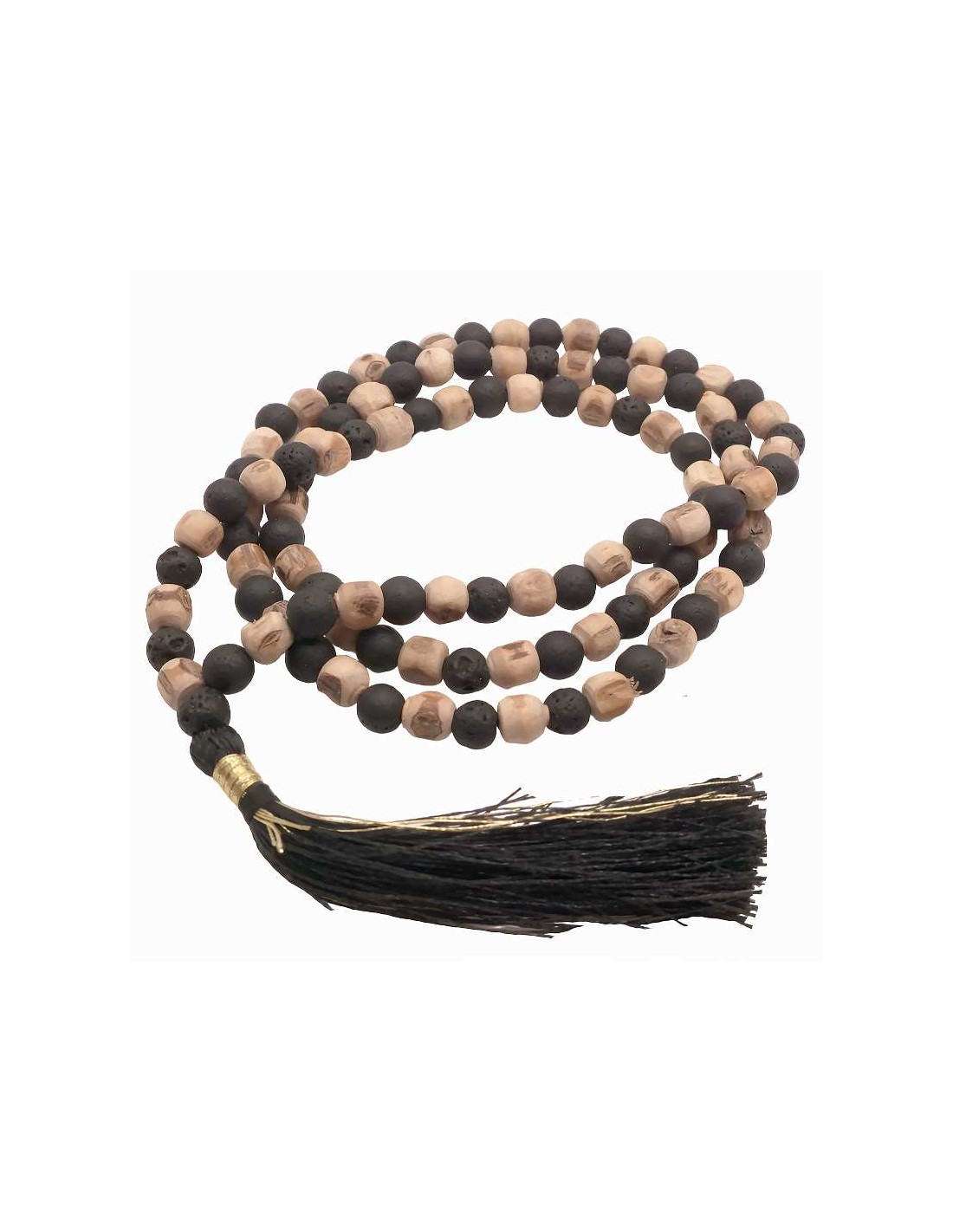 Mala Tulsi: 108 Cuentas de madera y piedra volcánica