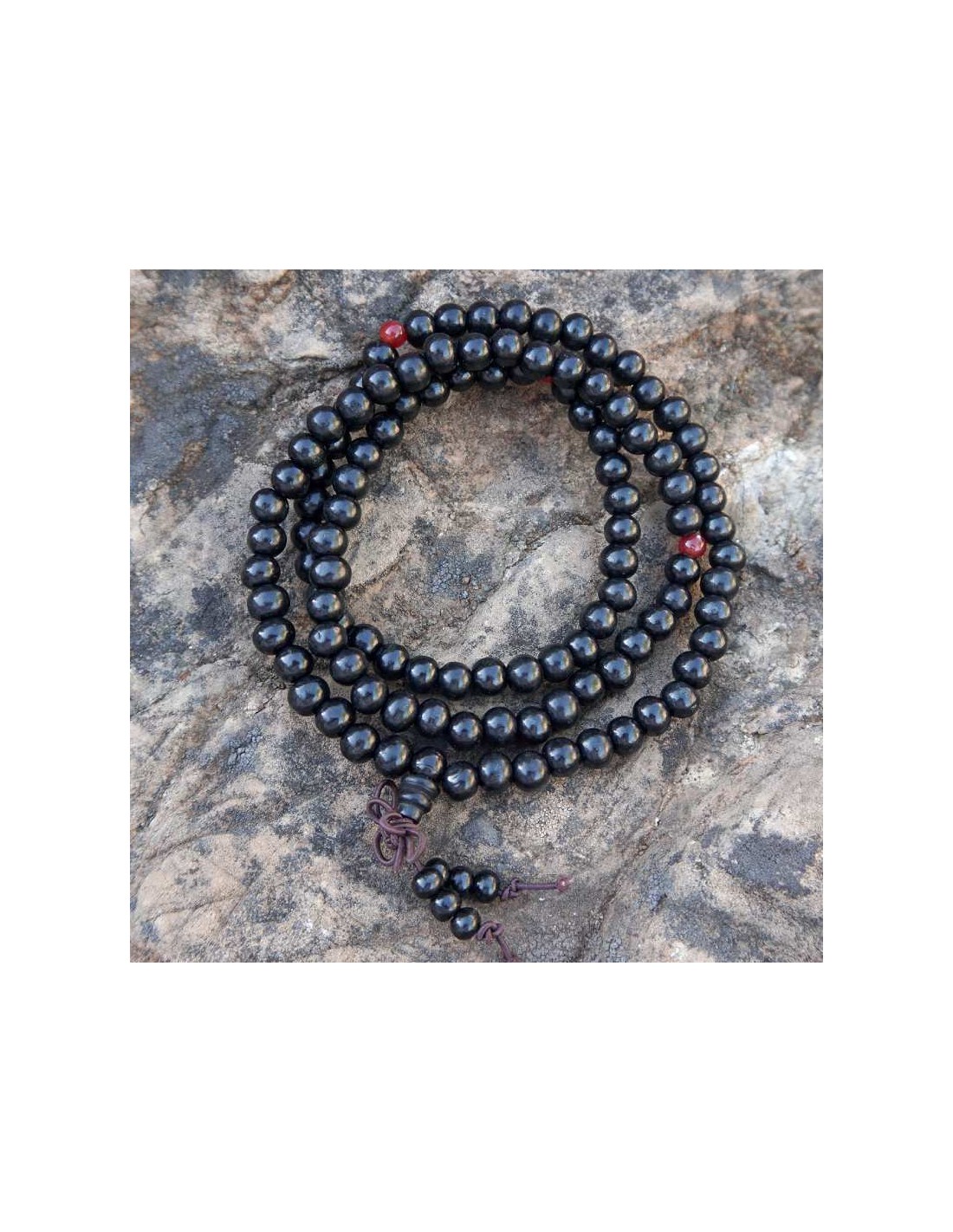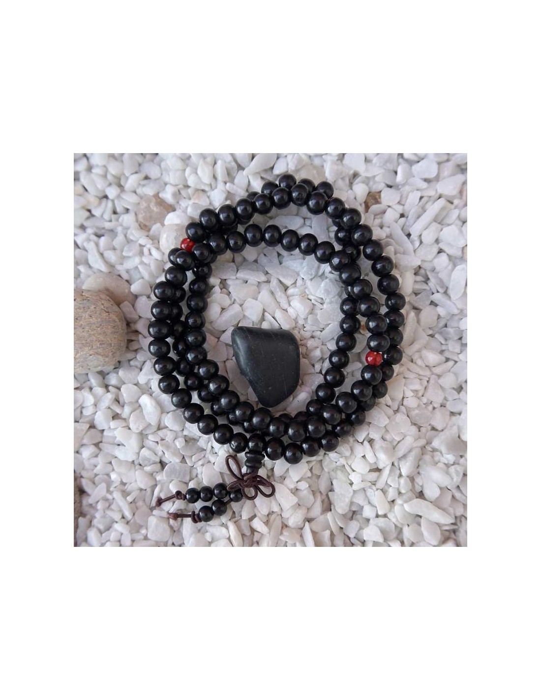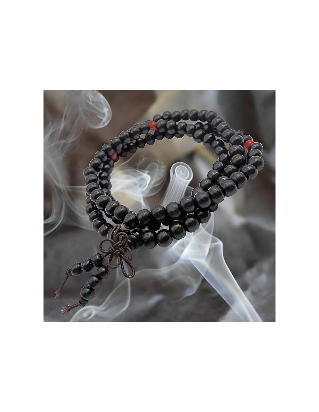 Japa Mala de Madera con 108 Cuentas y Nudo Tibetano - Pulsera de Cuatro Vueltas con Cordón Elástico Ajustable