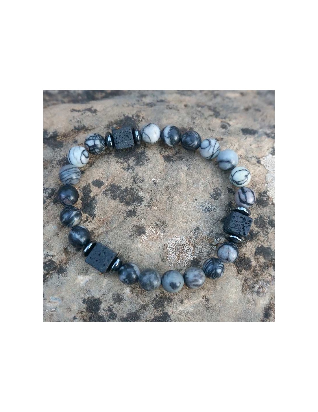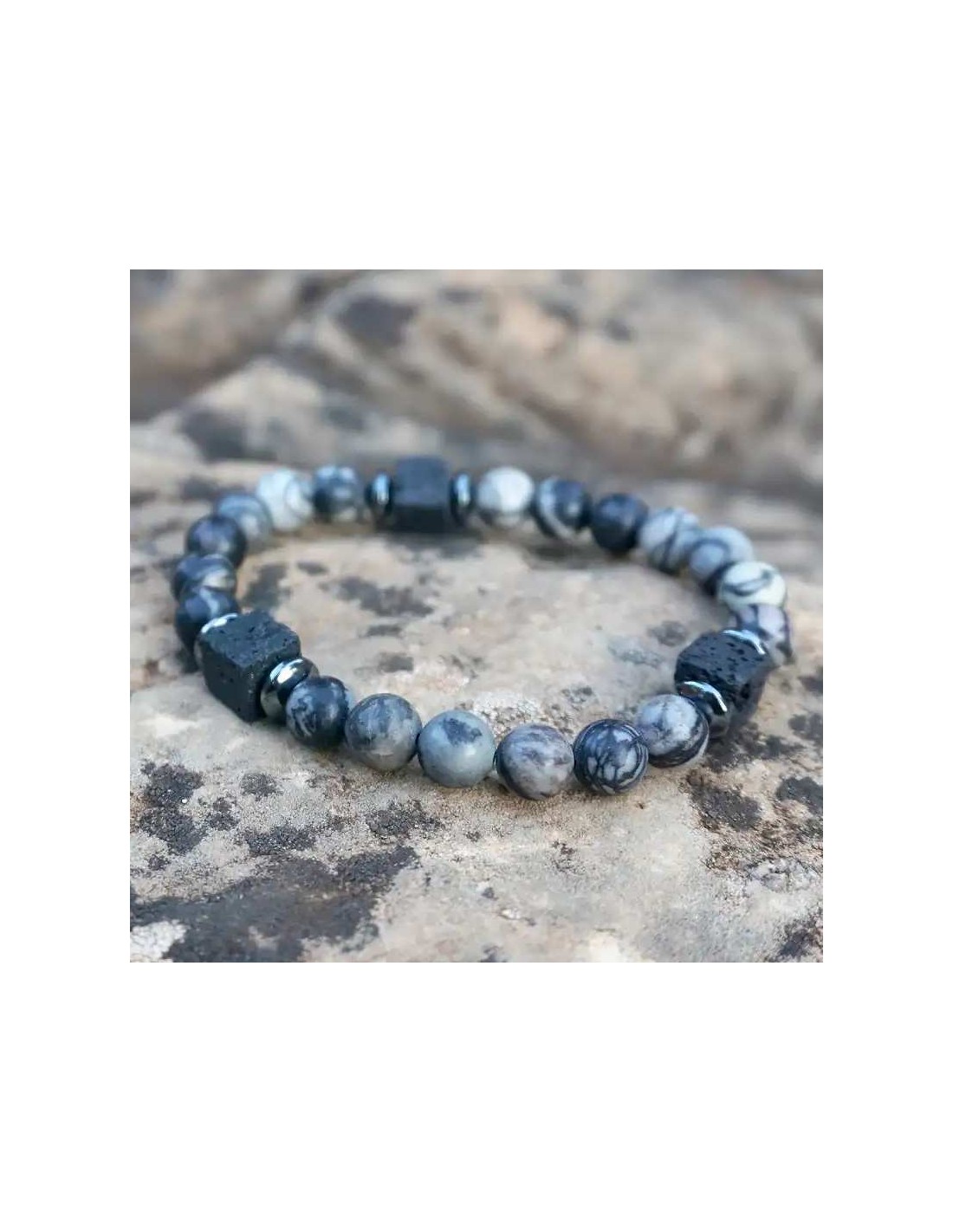 Pulsera de Jaspe Mapeado, Piedra de Lava y Hematita