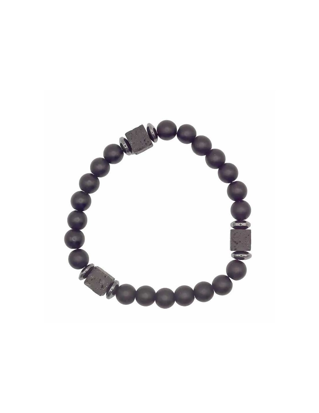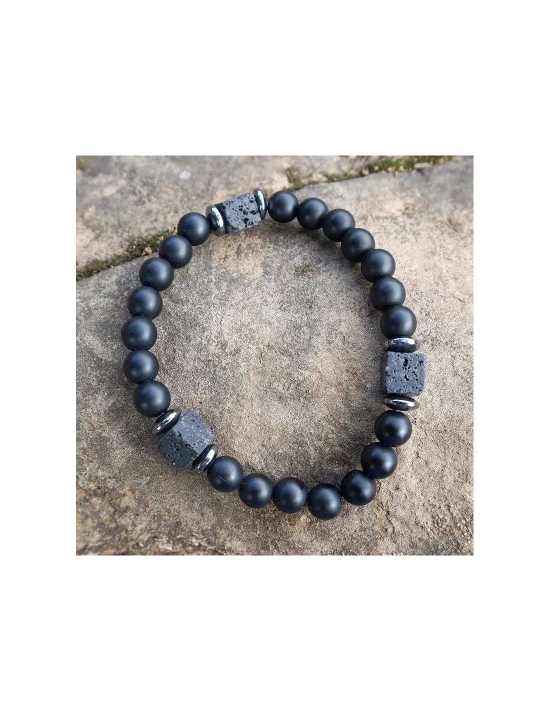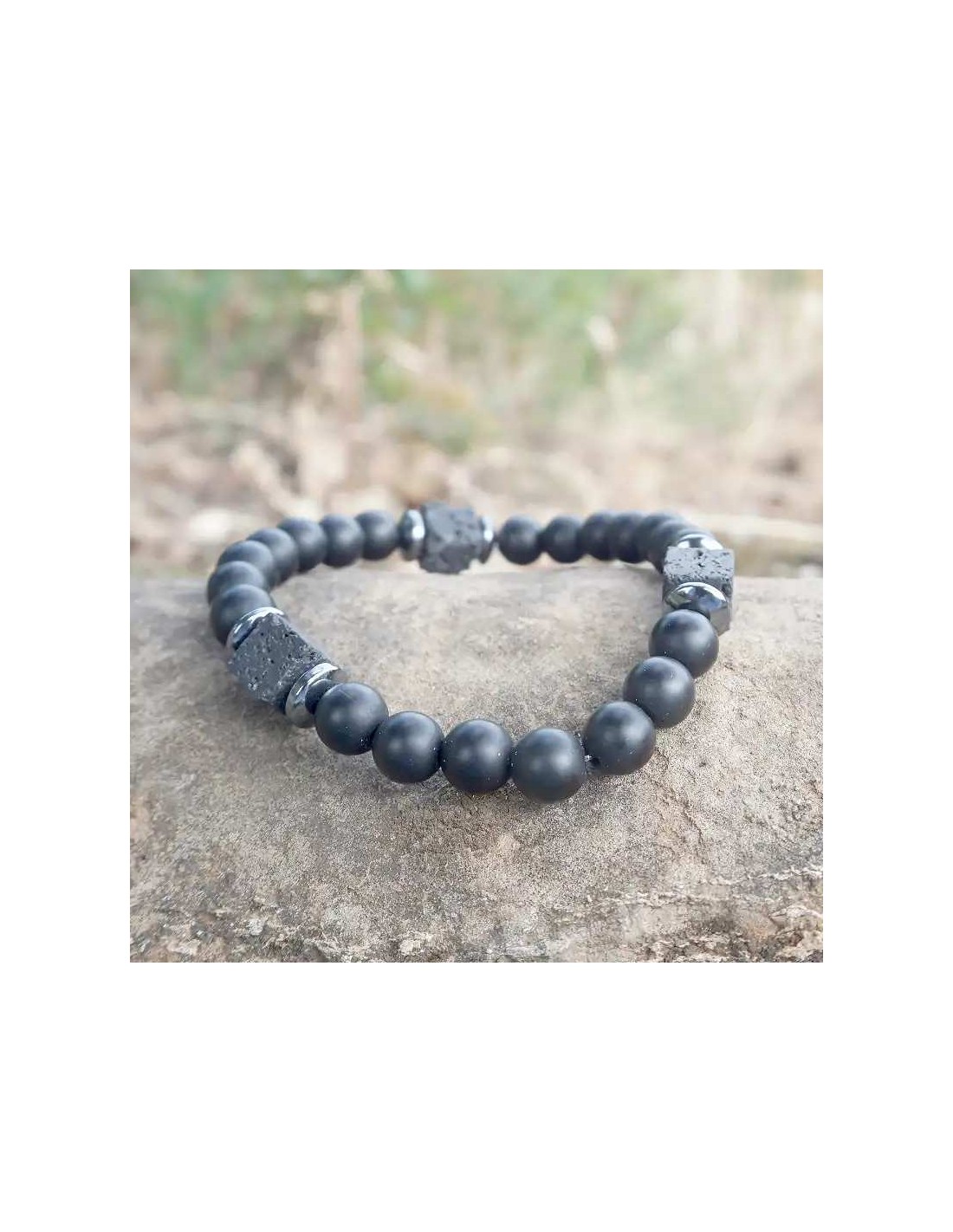Pulsera hombre con cuentas de Ónix Pulido y piedra de lava