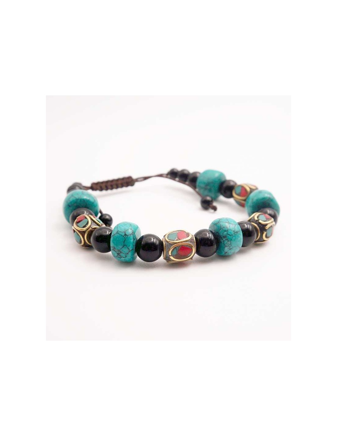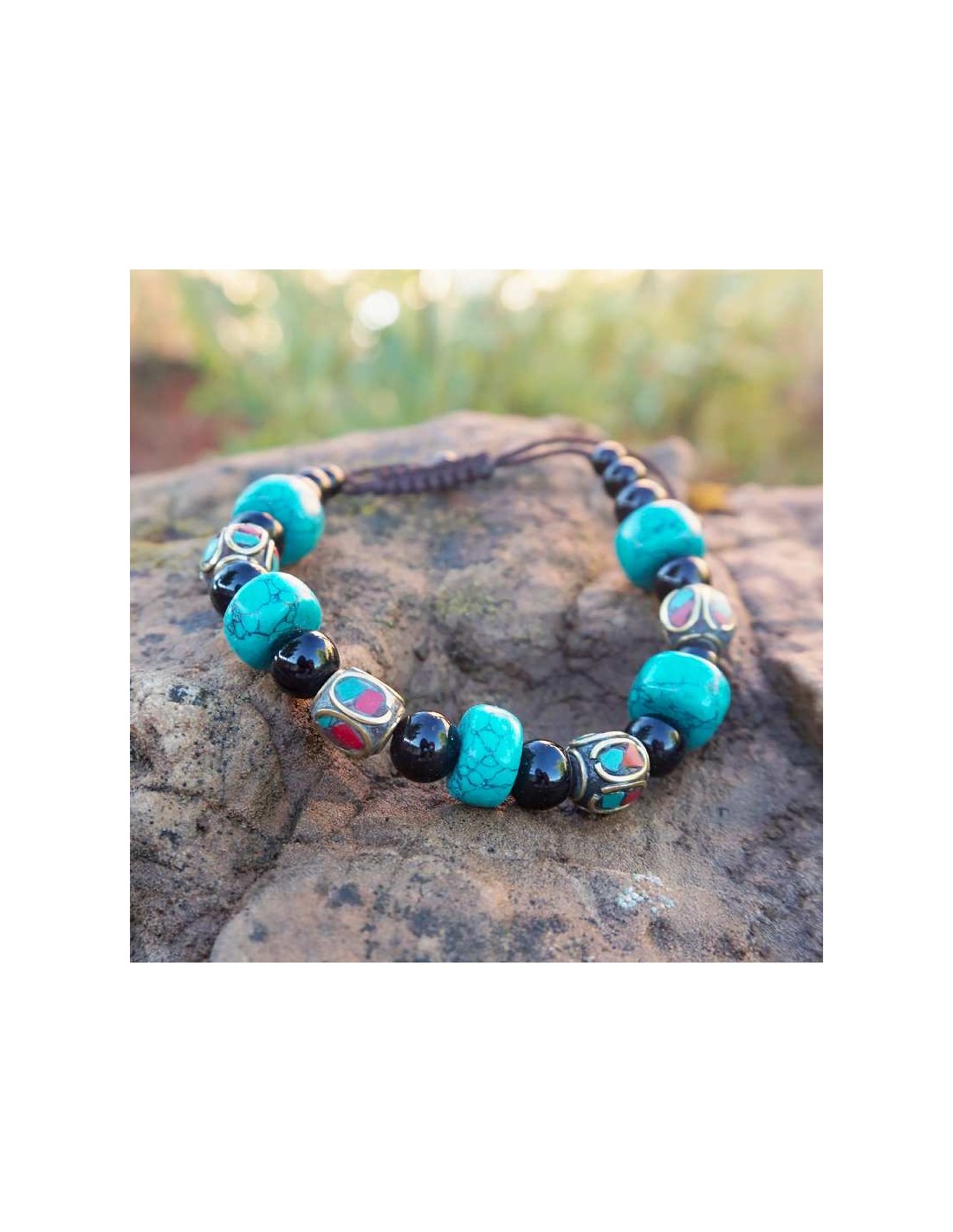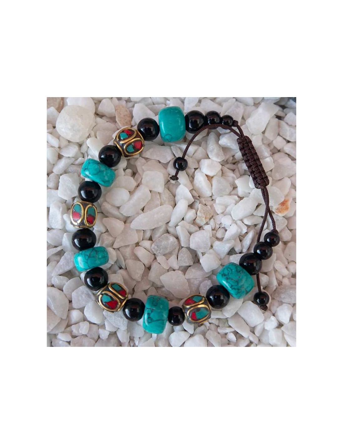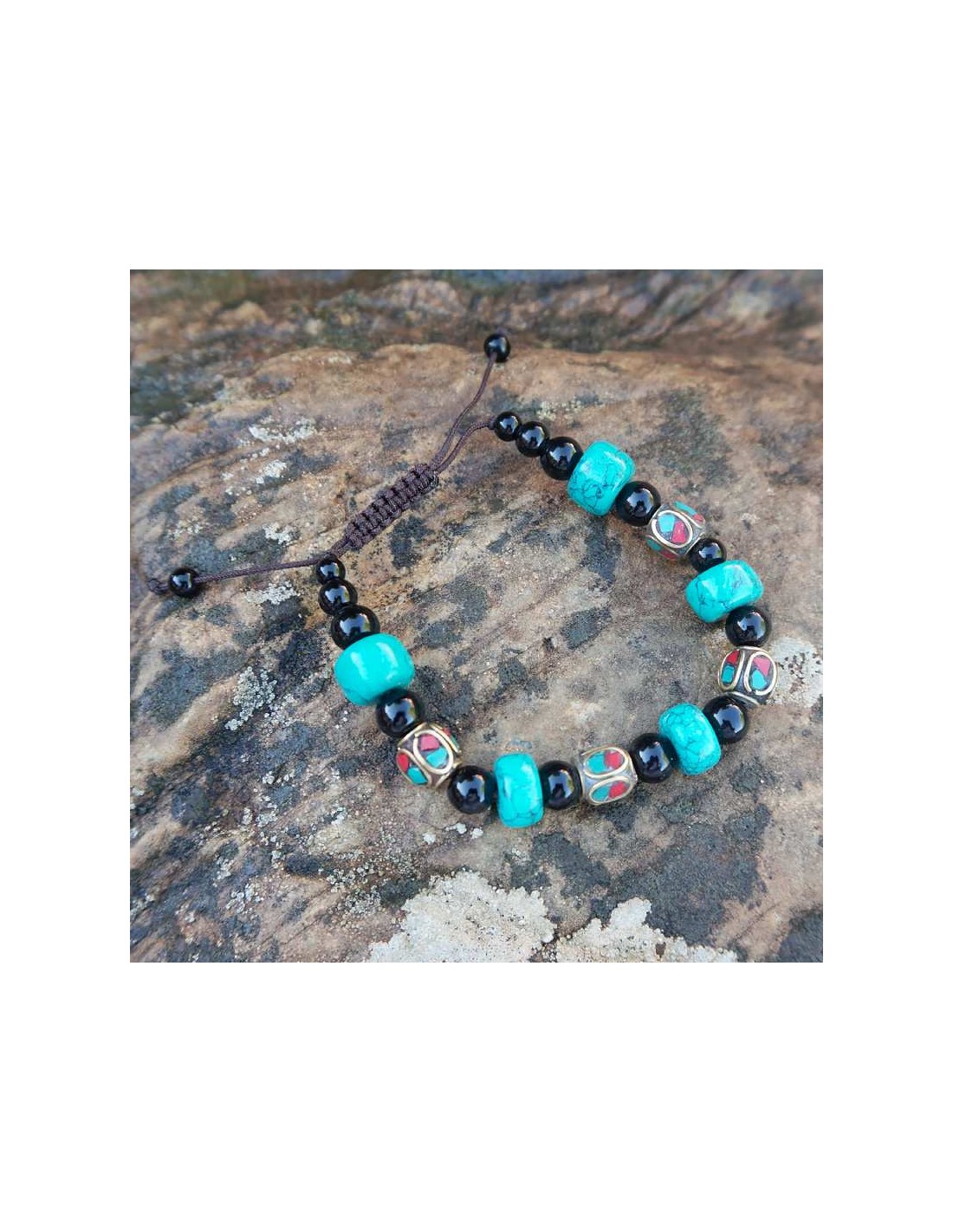 Pulsera Tibetana de Turquesa y Obsidiana: Equilibrio y Protección