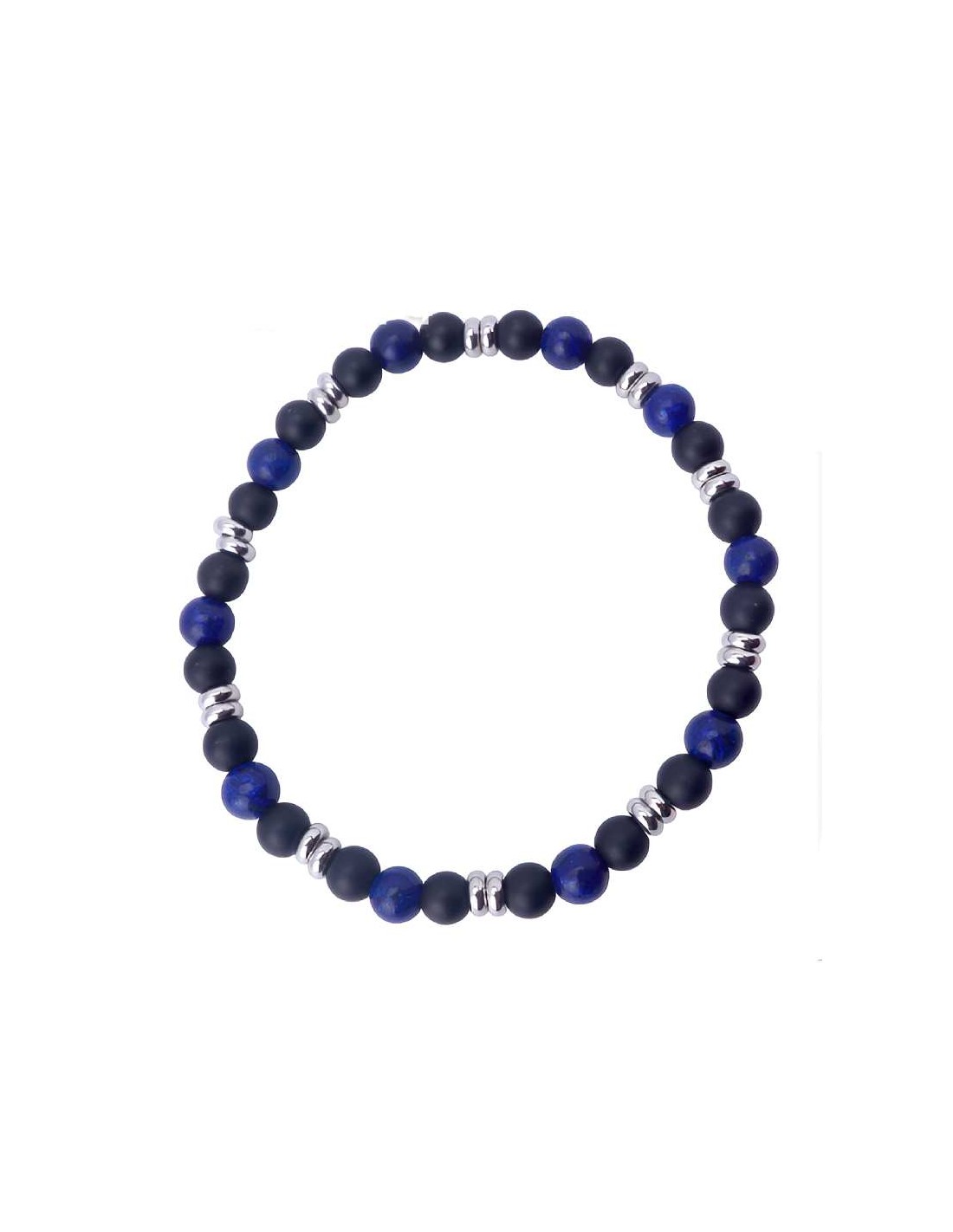 Pulsera de acero para hombre con cuentas de lapislázuli y obsidiana mate: Un accesorio elegante y con estilo