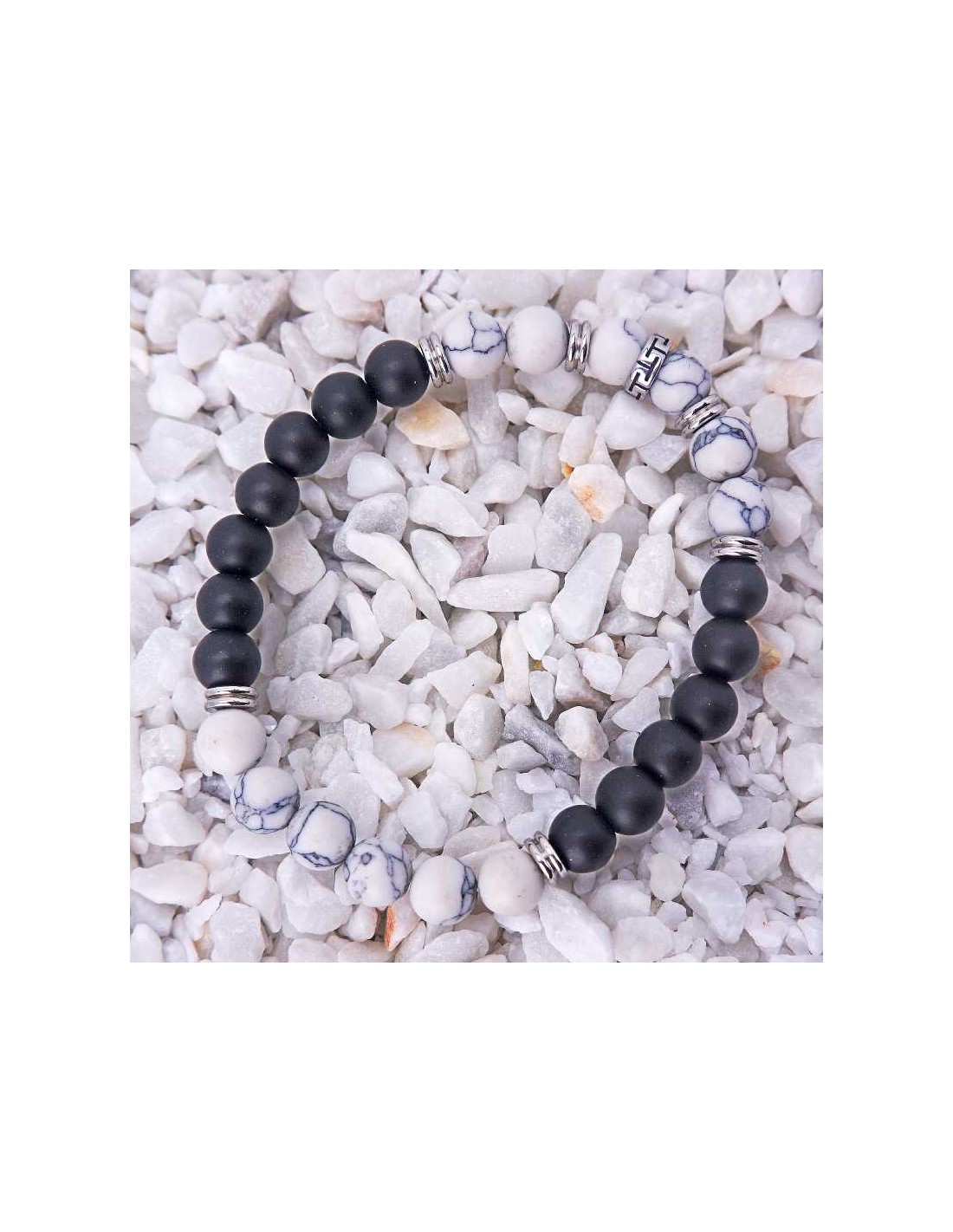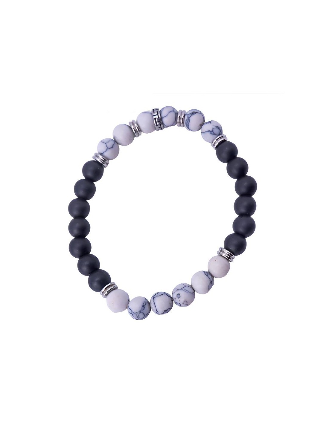 Pulsera de acero con cuentas de howlita y piedra volcánica para hombre: Equilibrio y protección