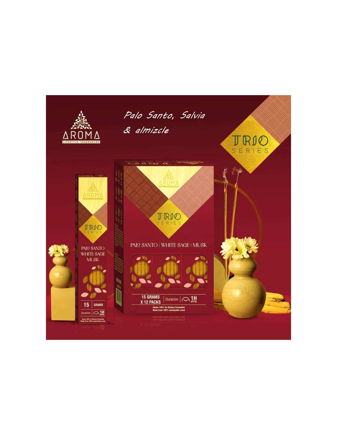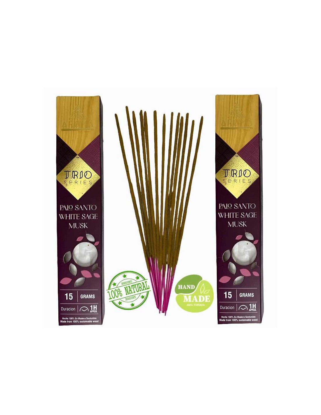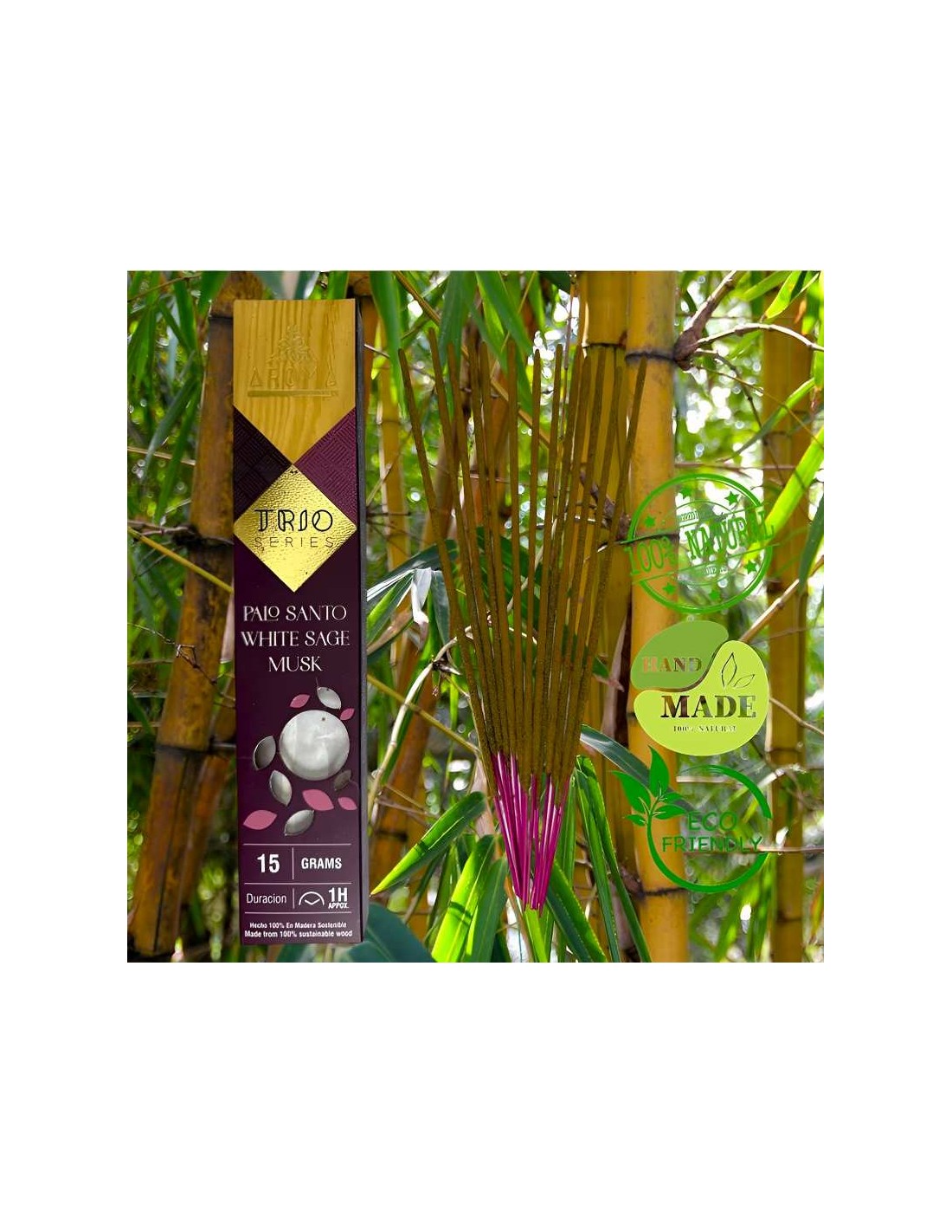 El Incienso Trío Palo Santo, Salvia Blanca y Musk es una mezcla cuidadosamente elaborada que une las propiedades purificadoras del Palo Santo, la limpieza energética de la Salvia Blanca y la suavidad envolvente del Musk. Esta sinergia crea una atmósfera propicia para la meditación, la relajación y el equilibrio espiritual.