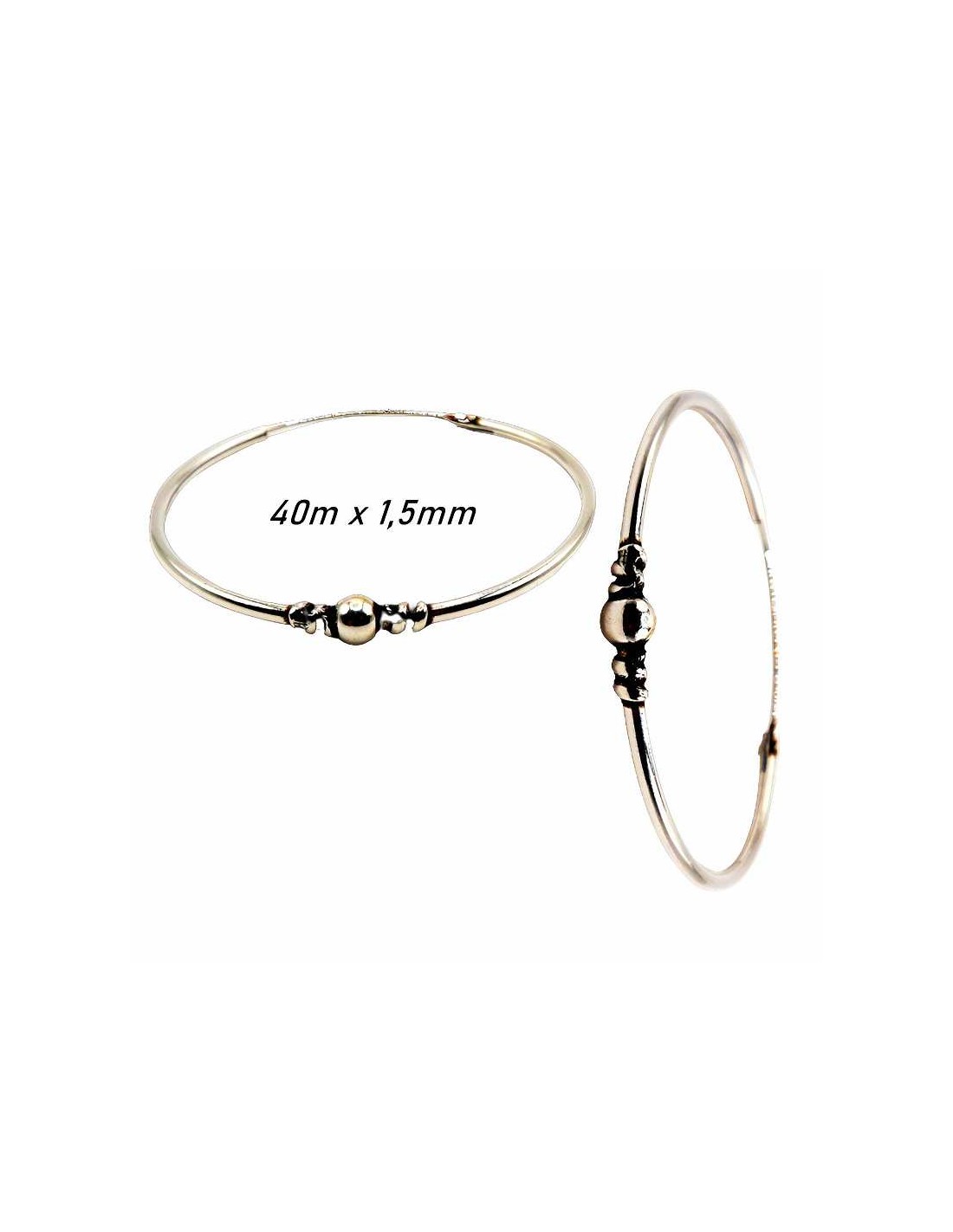 "Aros de plata" de ley. 40mm de diámetro x 1,5mm de grosor. Estos originales aros de plata están fabricados en Bali de forma artesanal.