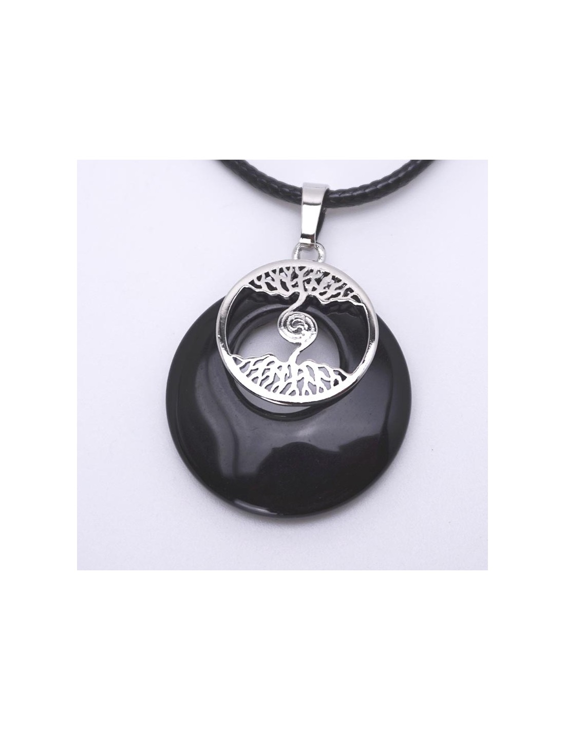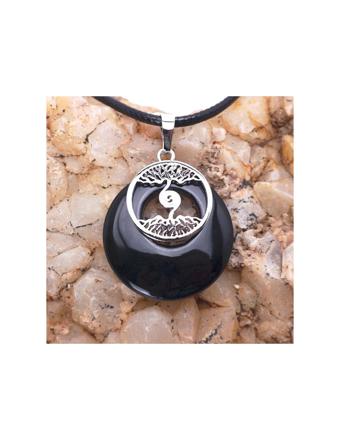 Original colgante hecho con piedra natural de ónix y una pieza central con el símbolo del Árbol de la Vida.