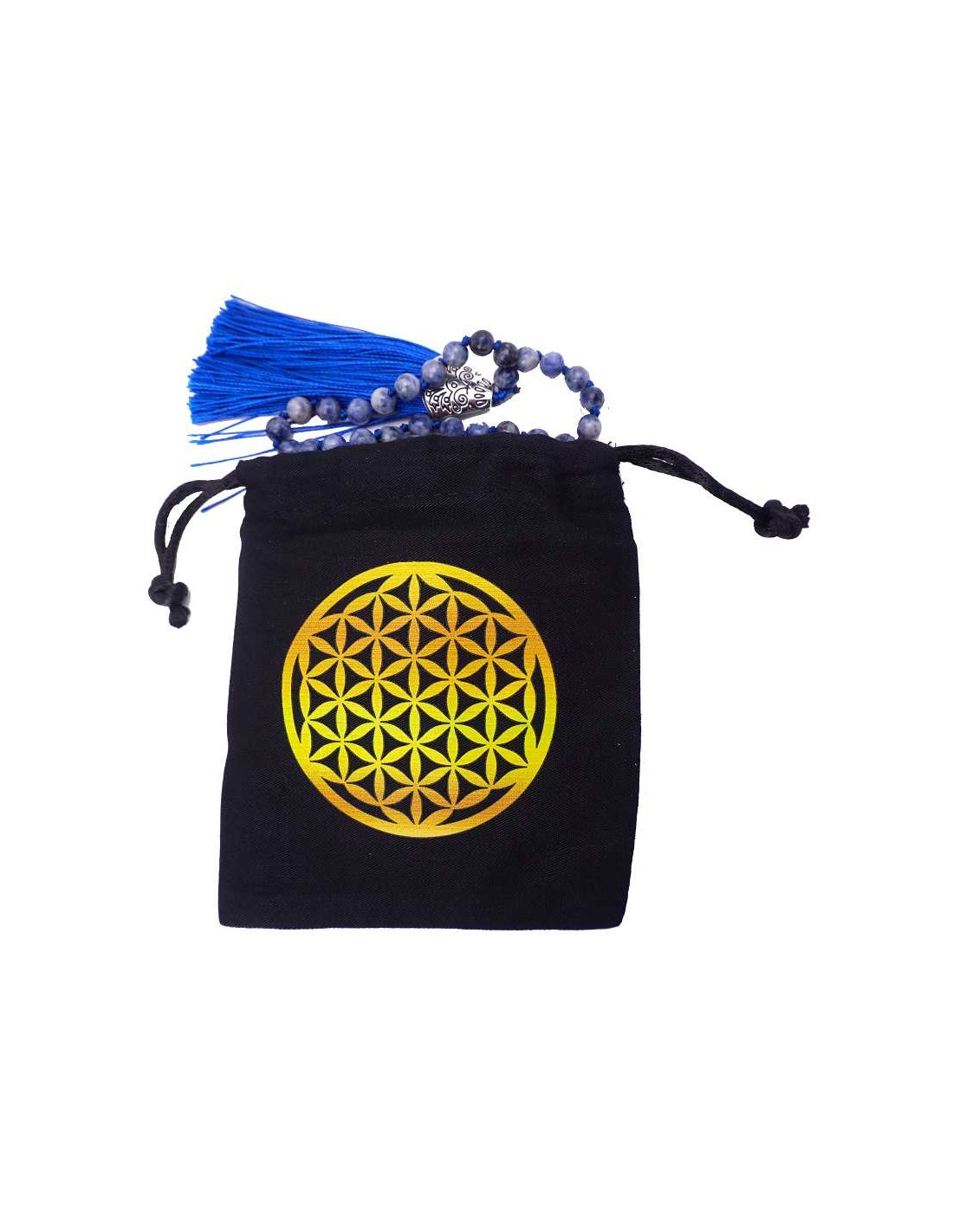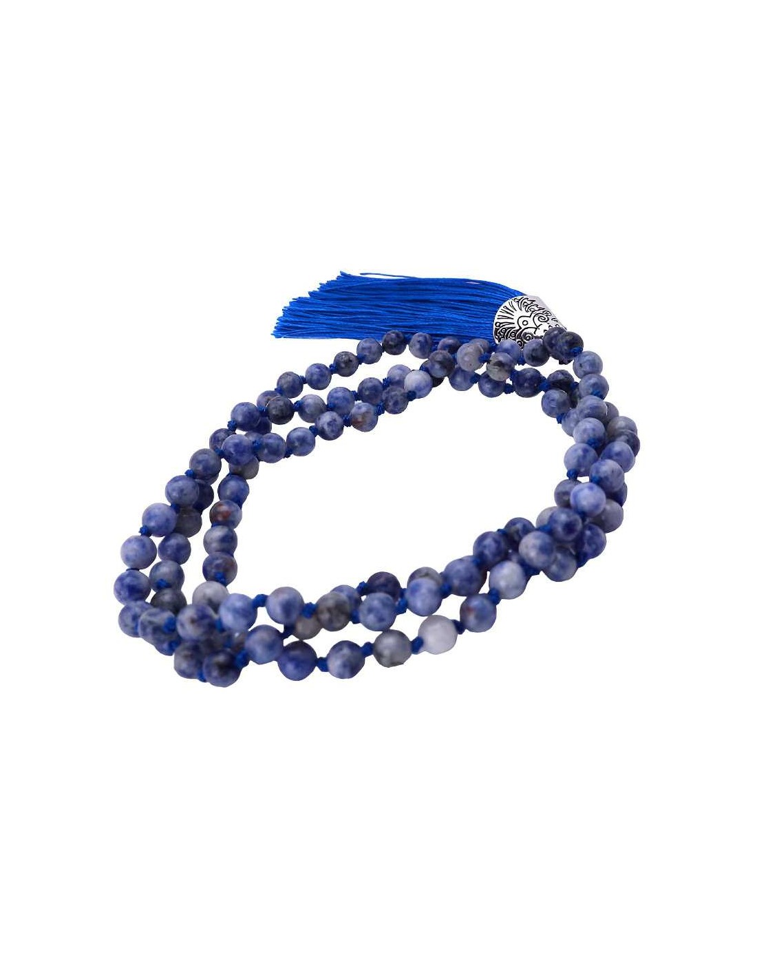 Este Japa Mala está hecho con cuentas de sodalita, una piedra preciosa de color azul intenso. La sodalita es conocida por sus propiedades calmantes y equilibradoras. Se cree que ayuda a reducir el estrés y la ansiedad, y que proporciona una sensación de paz y tranquilidad.
