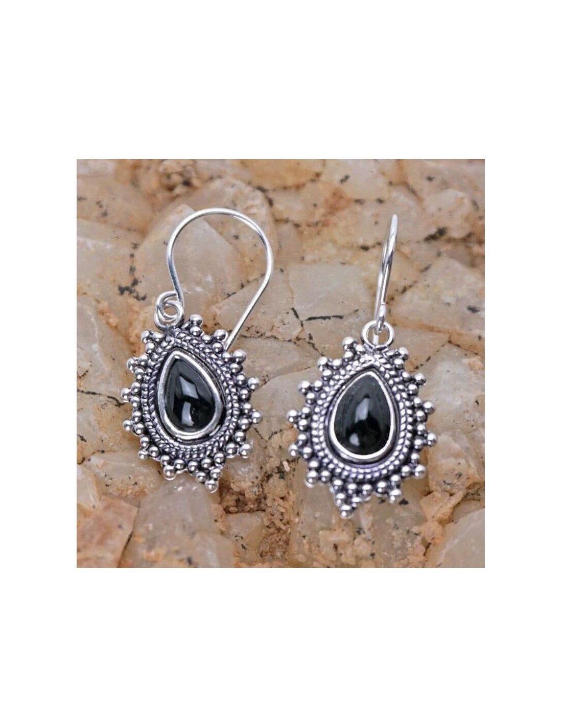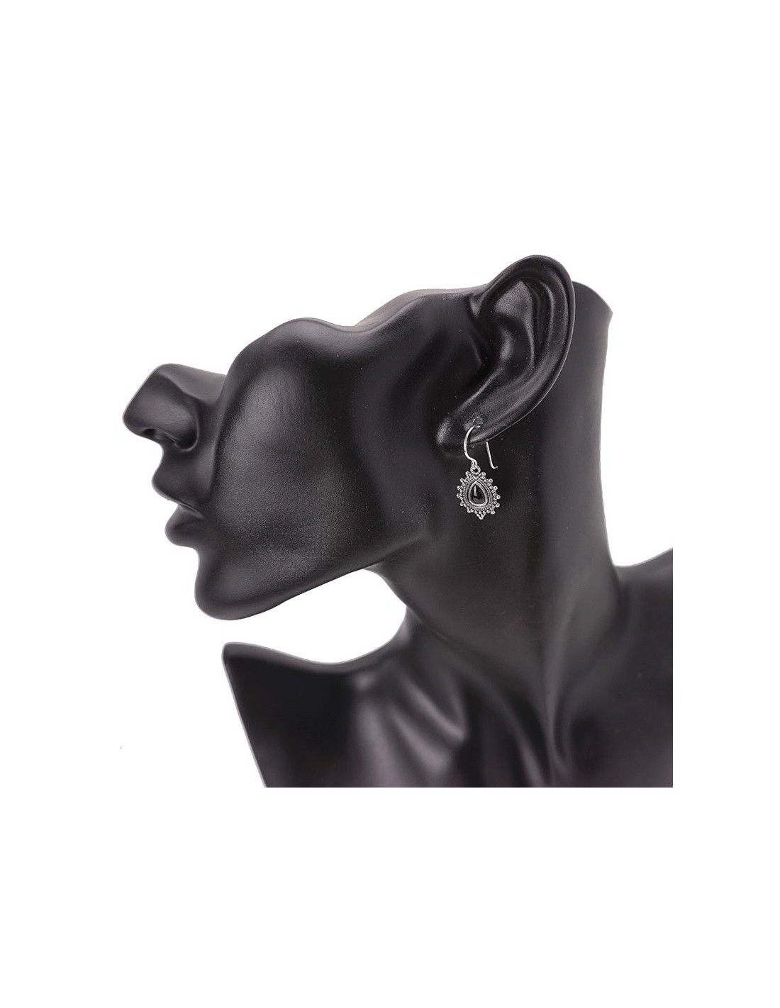Pendientes de plata diseño Hindú con piedra negra de ónix.