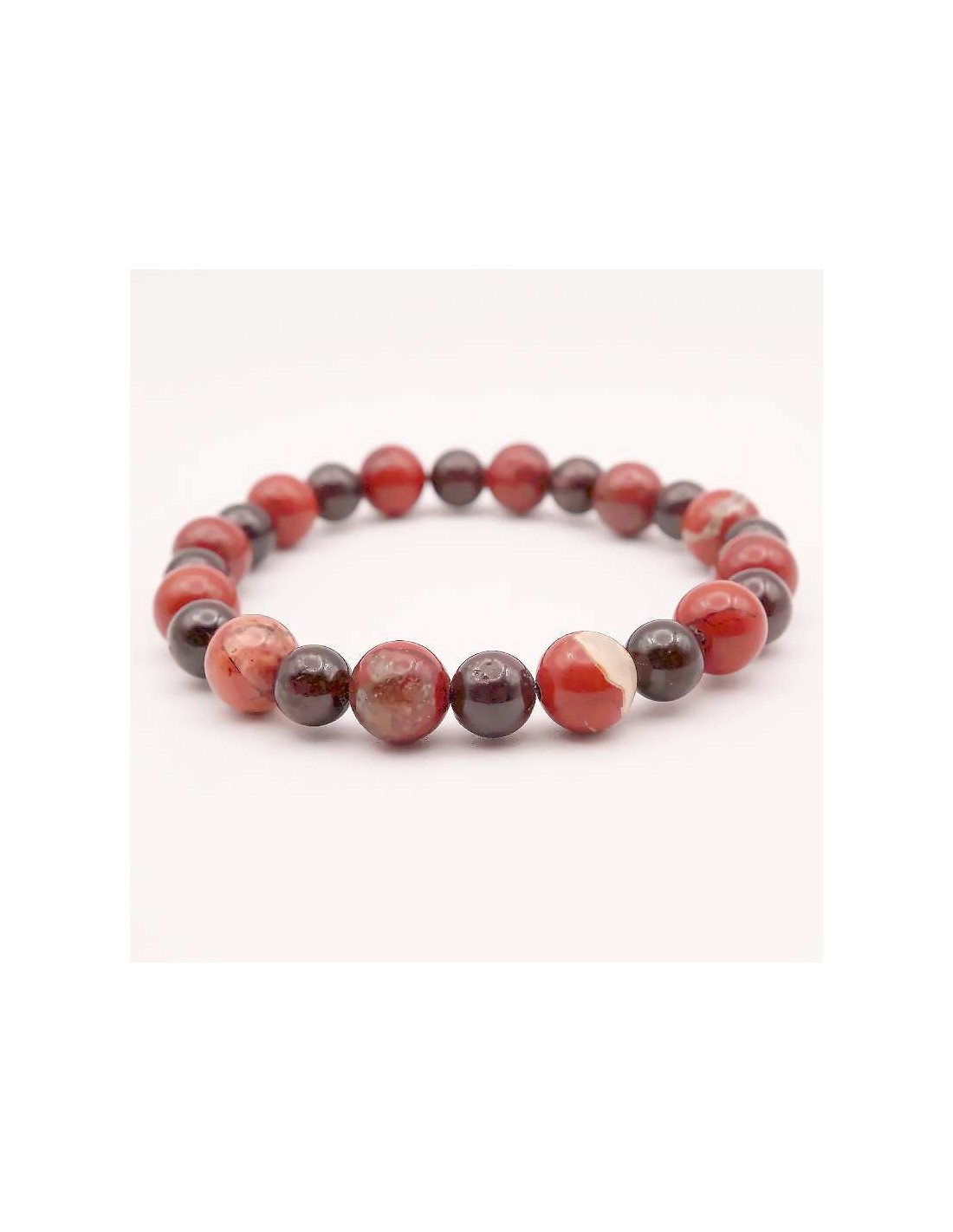 Pulsera de piedra natural Energía Vital, elaborada con granate y jaspe rojo. Una combinación única que potencia la fortaleza física y mental, aportando vitalidad y equilibrio a tu vida.