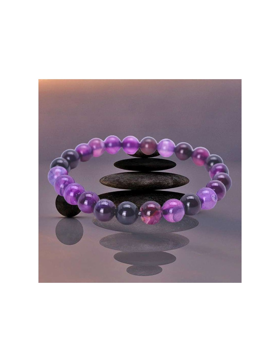 Pulsera de piedra natural ágata morada. Pulsera ajustable hecha con cuentas de ágata púrpura pulidas.